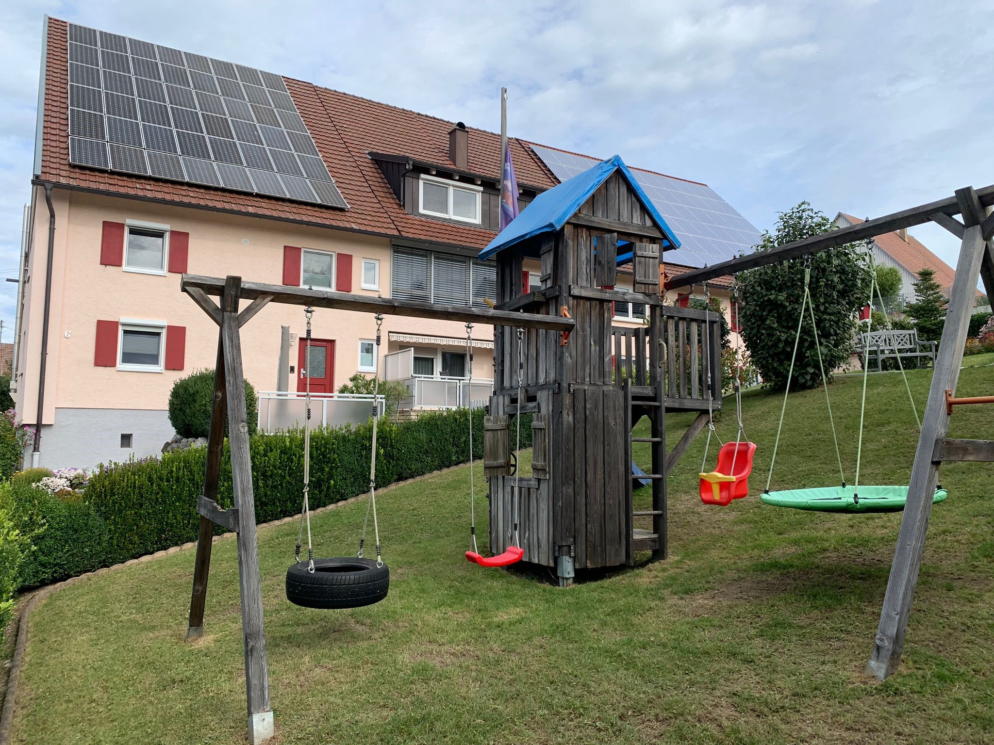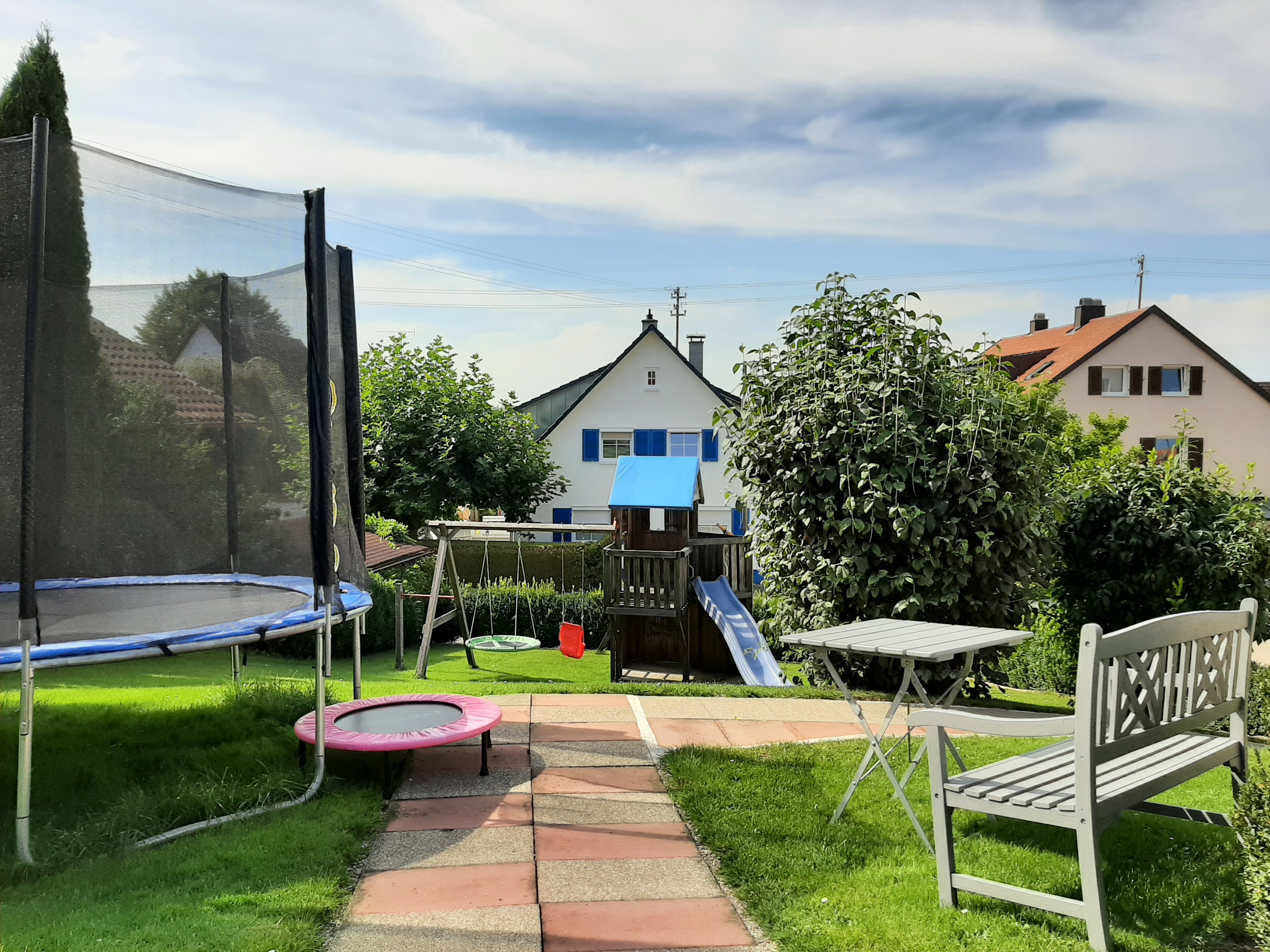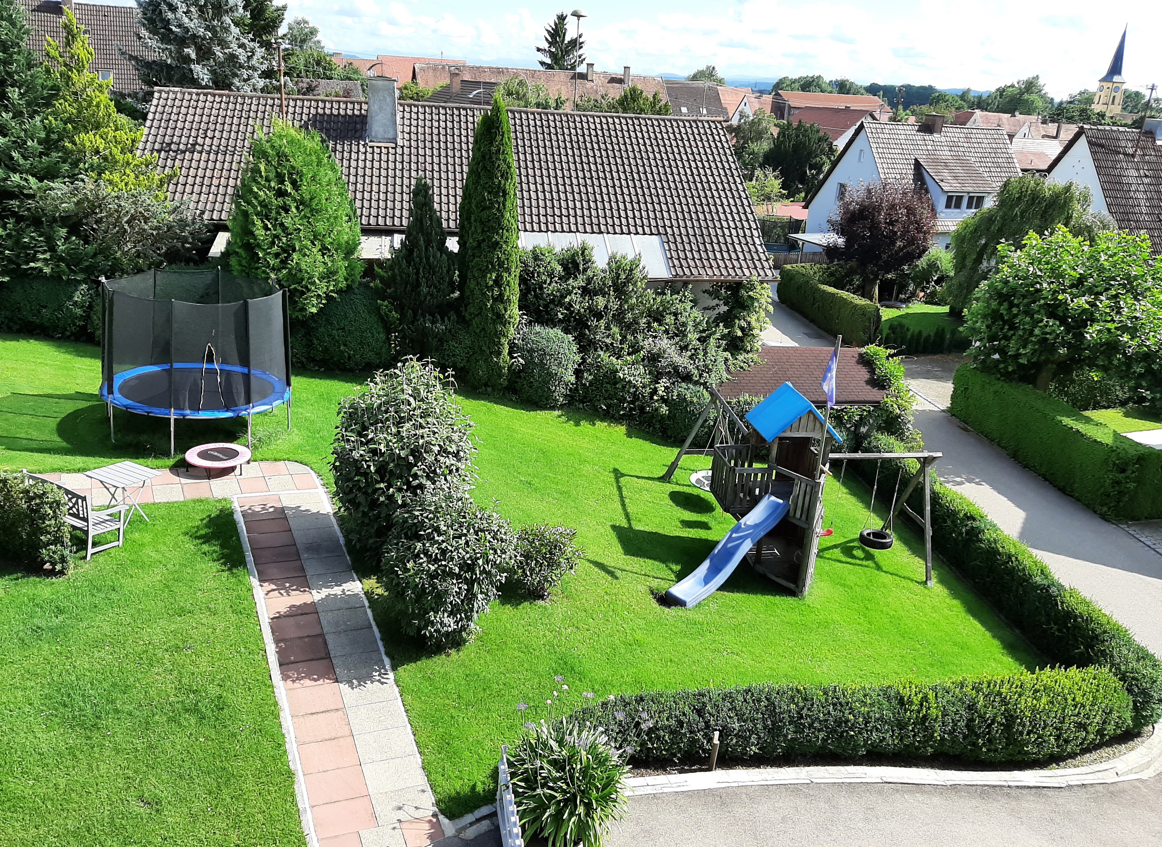 GartenGanz gleich welches Alter Ihr Kind hat: hier kommt jeder auf seine Kosten. Zu zweit auf der Reifenschaukel oder gemütlich rutschen, im Kletterhaus Pirat spielen oder im Trampolin hüpfen. Langeweile gibt es hier nicht. |