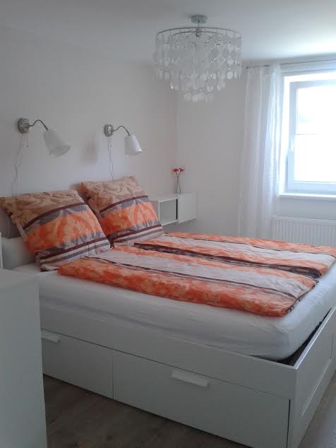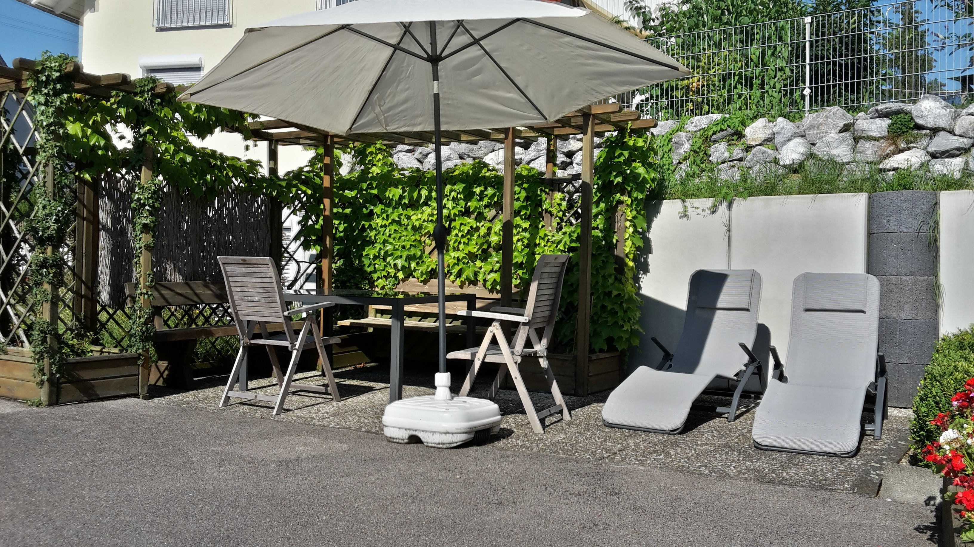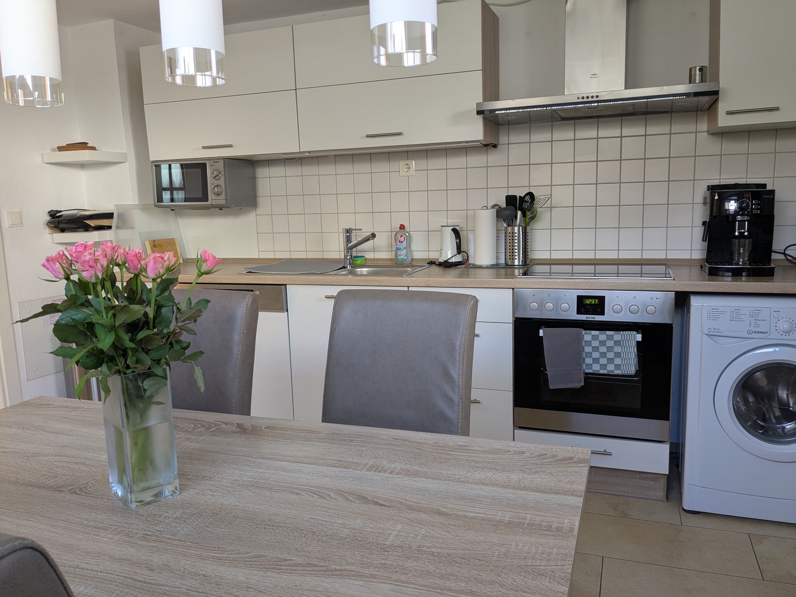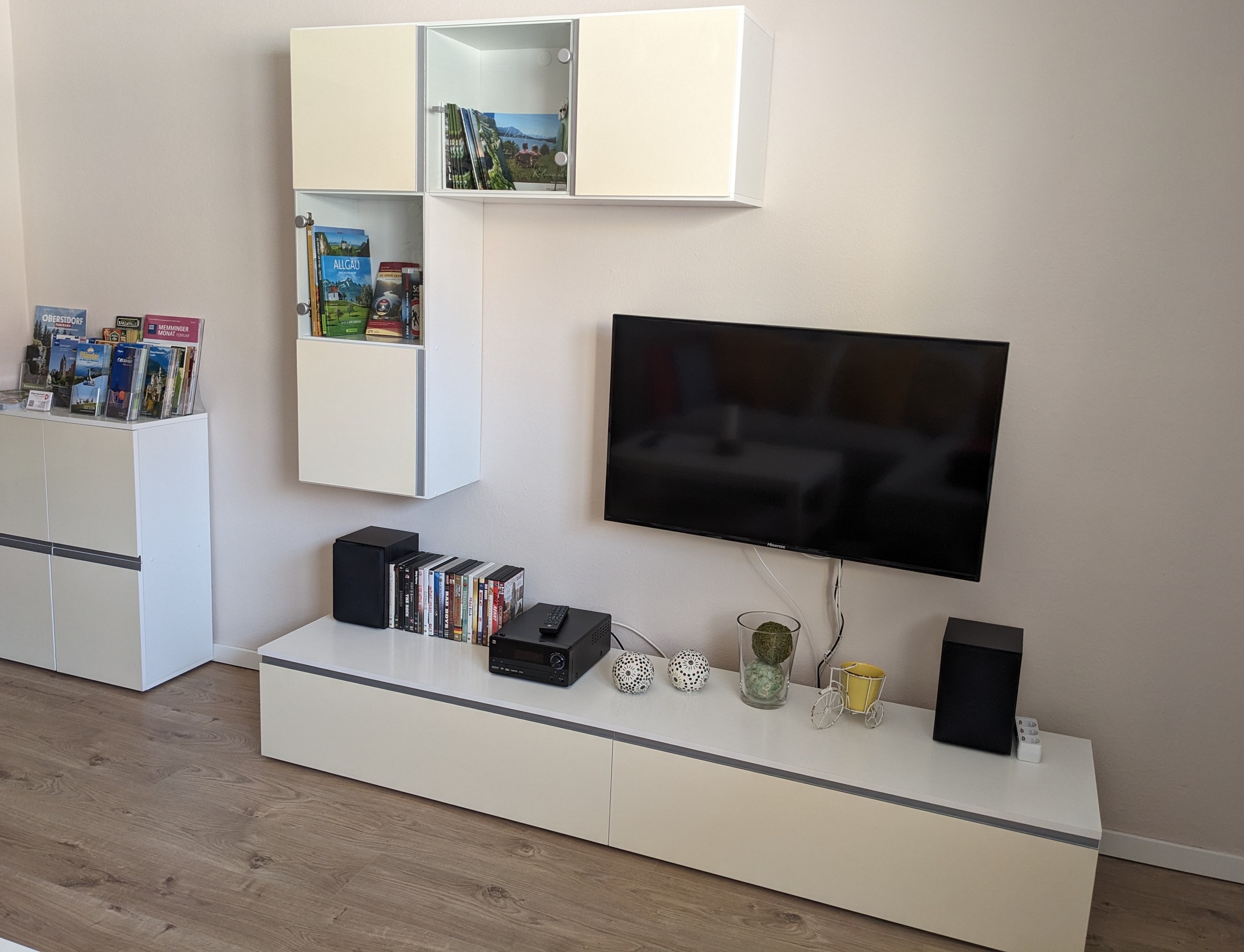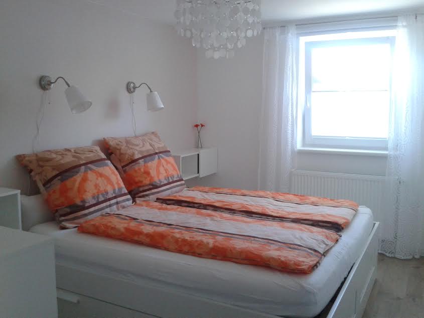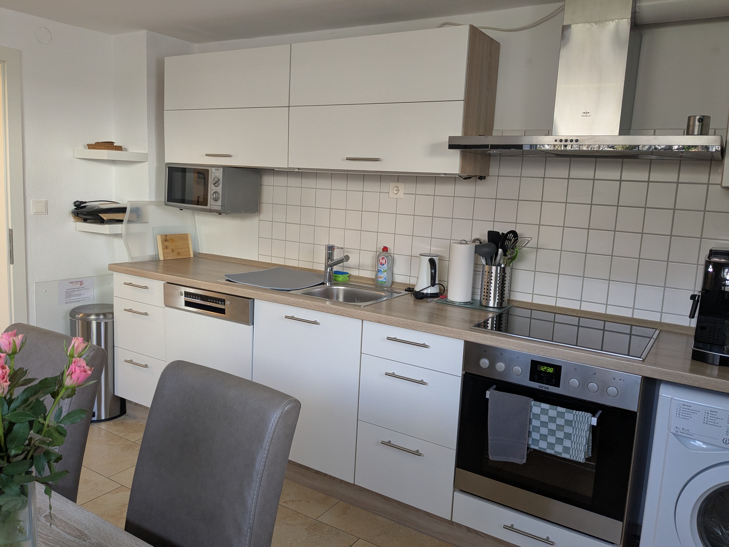 Dieses freundliche 60 m² große Apartment in Nord-/Ostlage eignet sich sowohl für eine geschäftlich oder privat reisende Einzelperson als auch für ein Paar. Die Bereitstellung von Zustell- betten bzw. Kinderbett ist möglich. Die Wohnung verfügt über einen separaten Eingang. Ein Autostellplatz ist direkt vor dem Apartment vorhanden. Unser Tipp: Beim Klicken auf die Fotos rechts erscheint jeweils eine Bilderreihe. Durch den Eingangsbereich mit Garderobe gelangen Sie hinein in das Apartment. Gleich zur Linken geht es hinein in das Bad mit Komfortdusche. Handtücher und Föhn sind vorhanden. Nach rechts geht es in die voll ausgestattete Wohnküche, mit Essbereich. Für Unterhaltung sorgt ein Fernseher mit integriertem DVD-Player. Die Küche verfügt über einen Elektroherd mit Ceranfeld, Spülmaschine, Kühlschrank mit Gefrierfach, Mikrowelle, Toaster, Sandwichmaker, Wasserkocher, Eierkocher, Stabmixer, Kaffeevollautomat einschließlich Bohnen, Milchaufschäumer und einen Waschmaschine mit integriertem Trockner. Getränke (Wasser, Softdrinks, Wein und Bier) sind zum Selbstkostenpreis erhältlich. Im Wohnzimmer. erwartet Sie ein gemütliches Ecksofa sowie ein smart-TV mit DVD Player sowie Stereoanlage. DVDs vorhanden. Wir haben umfangsreiches Prospektmaterial über die besten Ausflugsmöglichkeiten in Memmingen und Umgebung für Sie bereitgestellt. Eine Spielesammlung ermöglicht gemütliche Spielabende. Unsere beliebten Allgäu-Krimis mit Kommissar Kluftinger werden bestimmt auch Sie in den Bann ziehen. WLAN vorhanden. Durch das Wohnzimmer hindurch gelangen Sie in das Schlafzimmer, das über Plissee-Rollos verfügt. Es kann auch mit Hilfe von Verdunkelungsrollos komplett verdunkelt werden. Wohnzimmer und Küche sind übrigens auch mit Verdunkelungsrollos ausgestattet. Sollte es Ihnen einmal im Sommer zu heiß werden, stellen wir Ihnen gerne einen Ventilator zur Verfügung. Terrasse Ausstattung Bad: Ausstattung Schlafzimmer: