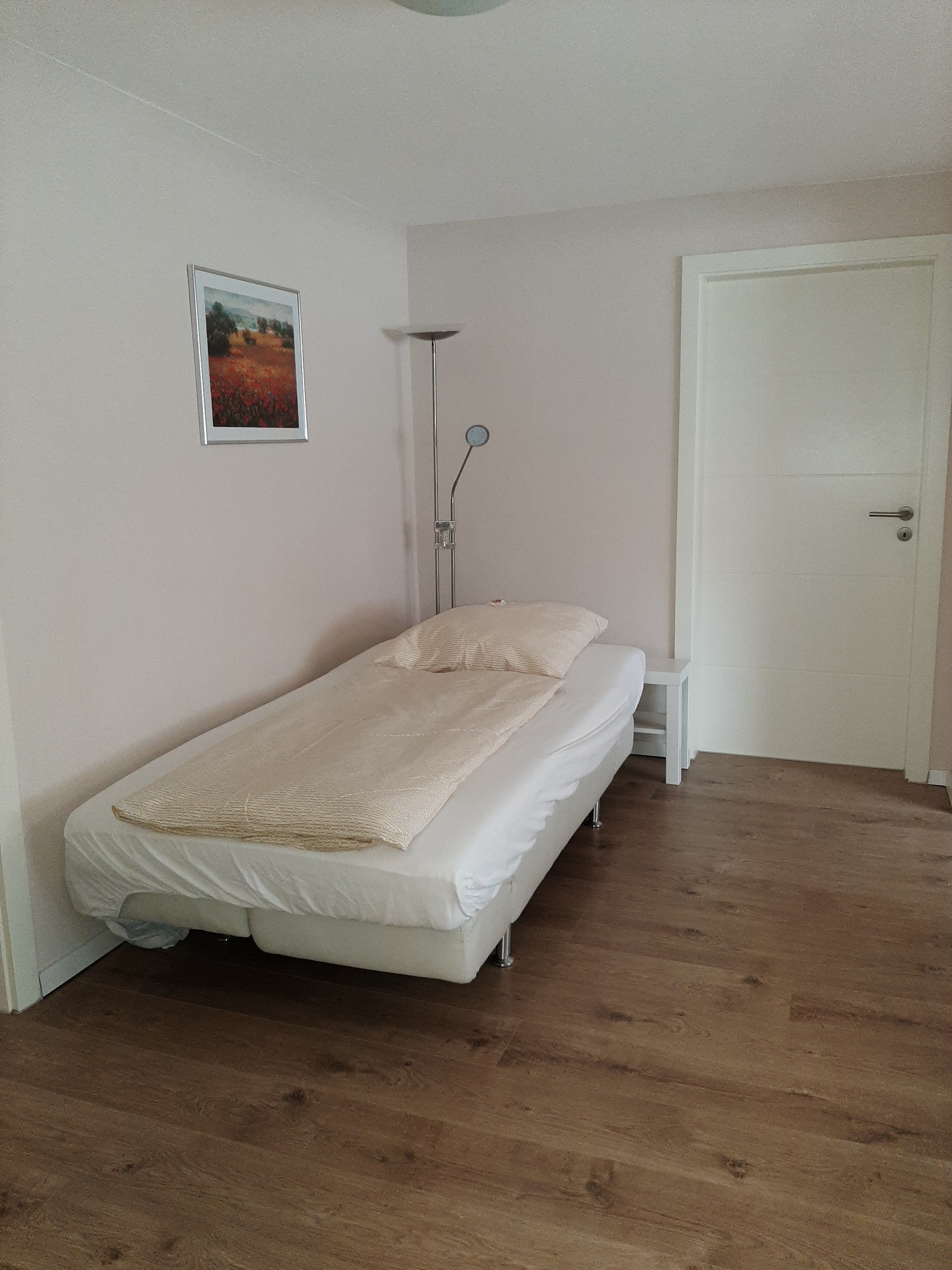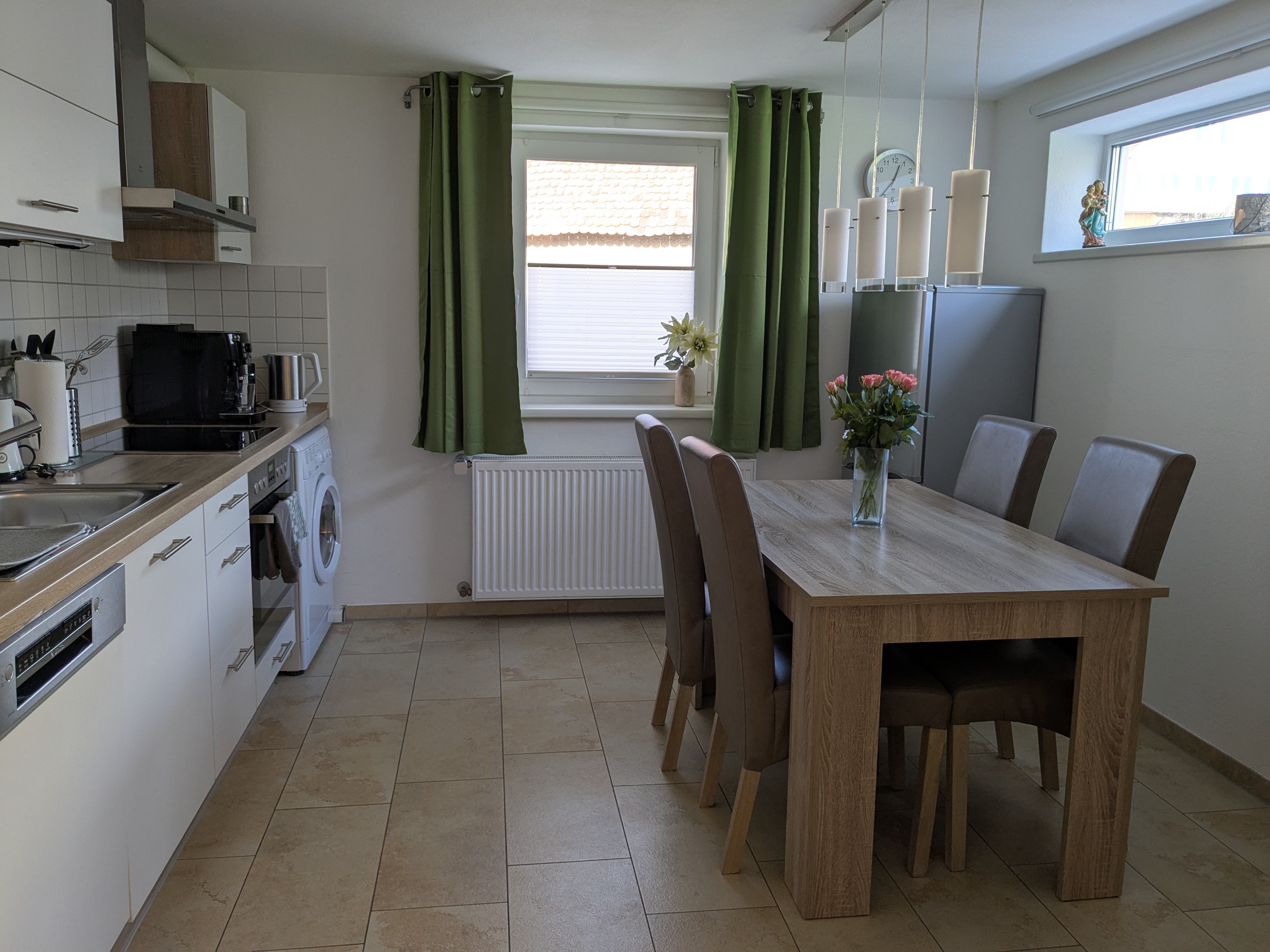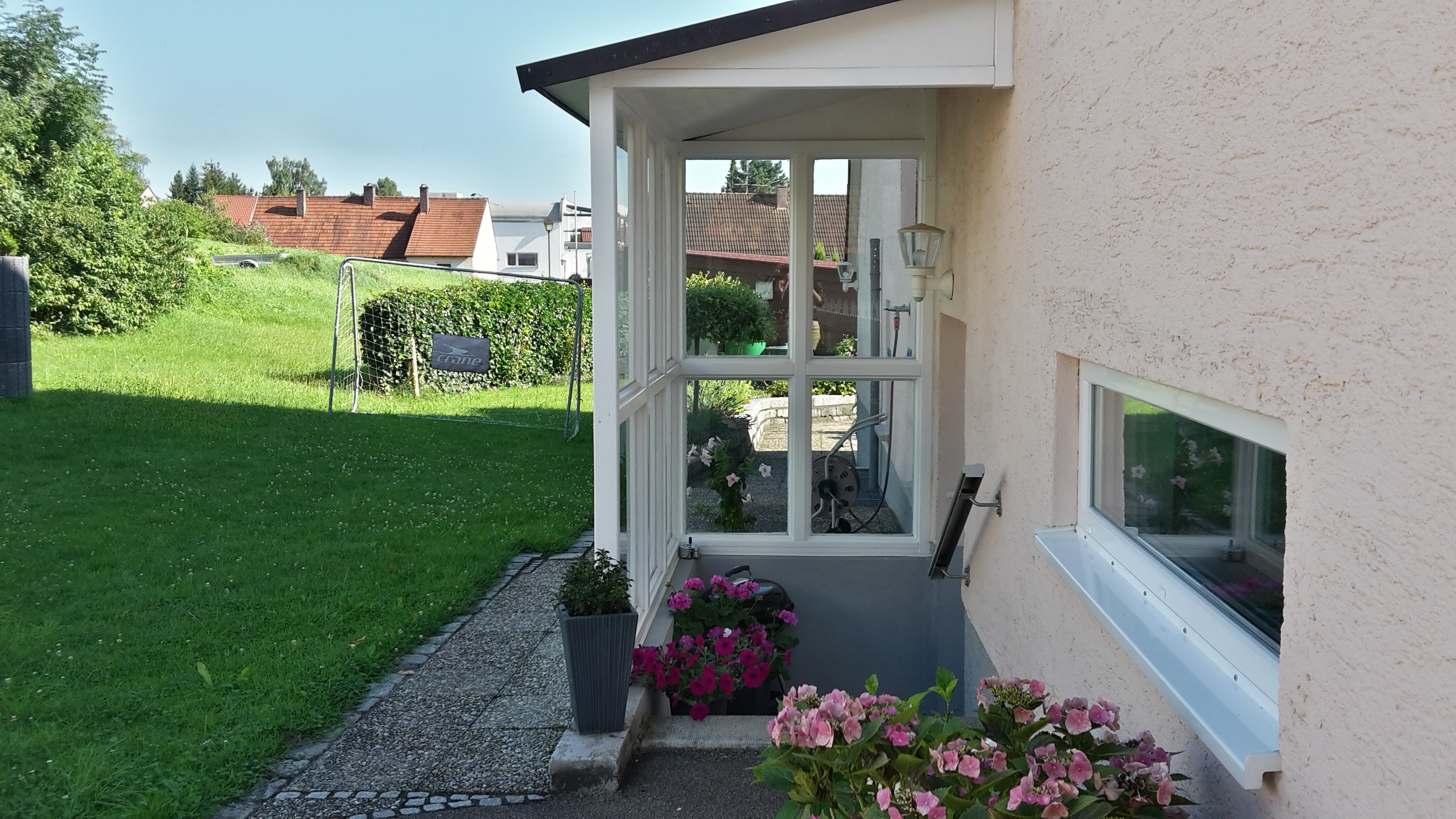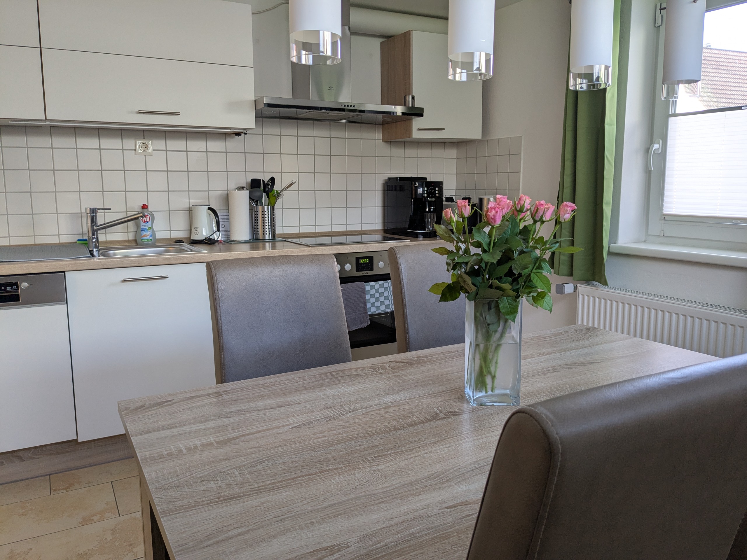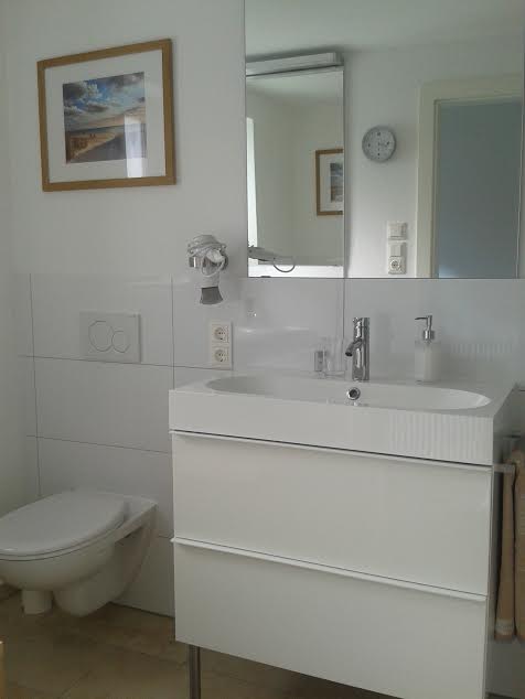 Dieses freundliche 60 m² große Apartment in Nord-/Ostlage eignet sich sowohl für eine geschäftlich oder privat reisende Einzelperson als auch für ein Paar. Die Bereitstellung von Zustell- betten bzw. Kinderbett ist möglich. Die Wohnung verfügt über einen separaten Eingang. Ein Autostellplatz ist direkt vor dem Apartment vorhanden. Unser Tipp: Beim Klicken auf die Fotos rechts erscheint jeweils eine Bilderreihe. Durch den Eingangsbereich mit Garderobe gelangen Sie hinein in das Apartment. Gleich zur Linken geht es hinein in das Bad mit Komfortdusche. Handtücher und Föhn sind vorhanden. Nach rechts geht es in die voll ausgestattete Wohnküche, mit Essbereich. Für Unterhaltung sorgt ein Fernseher mit integriertem DVD-Player. Die Küche verfügt über einen Elektroherd mit Ceranfeld, Spülmaschine, Kühlschrank mit Gefrierfach, Mikrowelle, Toaster, Sandwichmaker, Wasserkocher, Eierkocher, Stabmixer, Kaffeevollautomat einschließlich Bohnen, Milchaufschäumer und einen Waschmaschine mit integriertem Trockner. Getränke (Wasser, Softdrinks, Wein und Bier) sind zum Selbstkostenpreis erhältlich. Im Wohnzimmer. erwartet Sie ein gemütliches Ecksofa sowie ein smart-TV mit DVD Player sowie Stereoanlage. DVDs vorhanden. Wir haben umfangsreiches Prospektmaterial über die besten Ausflugsmöglichkeiten in Memmingen und Umgebung für Sie bereitgestellt. Eine Spielesammlung ermöglicht gemütliche Spielabende. Unsere beliebten Allgäu-Krimis mit Kommissar Kluftinger werden bestimmt auch Sie in den Bann ziehen. WLAN vorhanden. Durch das Wohnzimmer hindurch gelangen Sie in das Schlafzimmer, das über Plissee-Rollos verfügt. Es kann auch mit Hilfe von Verdunkelungsrollos komplett verdunkelt werden. Wohnzimmer und Küche sind übrigens auch mit Verdunkelungsrollos ausgestattet. Sollte es Ihnen einmal im Sommer zu heiß werden, stellen wir Ihnen gerne einen Ventilator zur Verfügung. Terrasse Ausstattung Bad: Ausstattung Schlafzimmer: