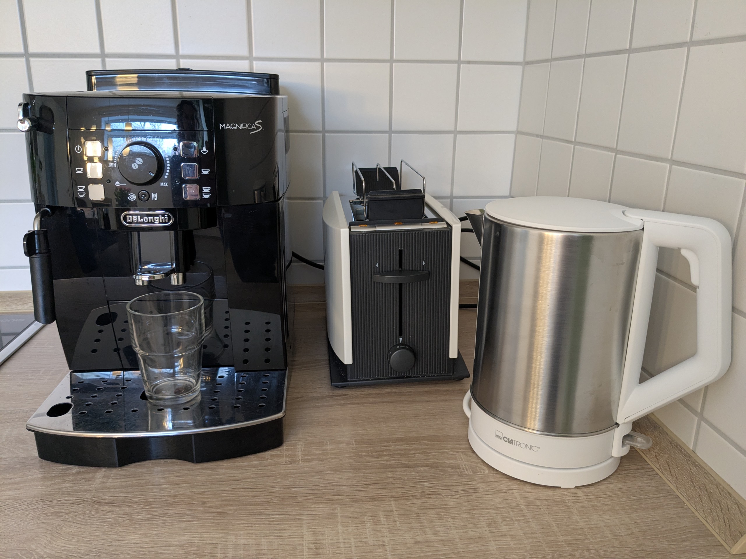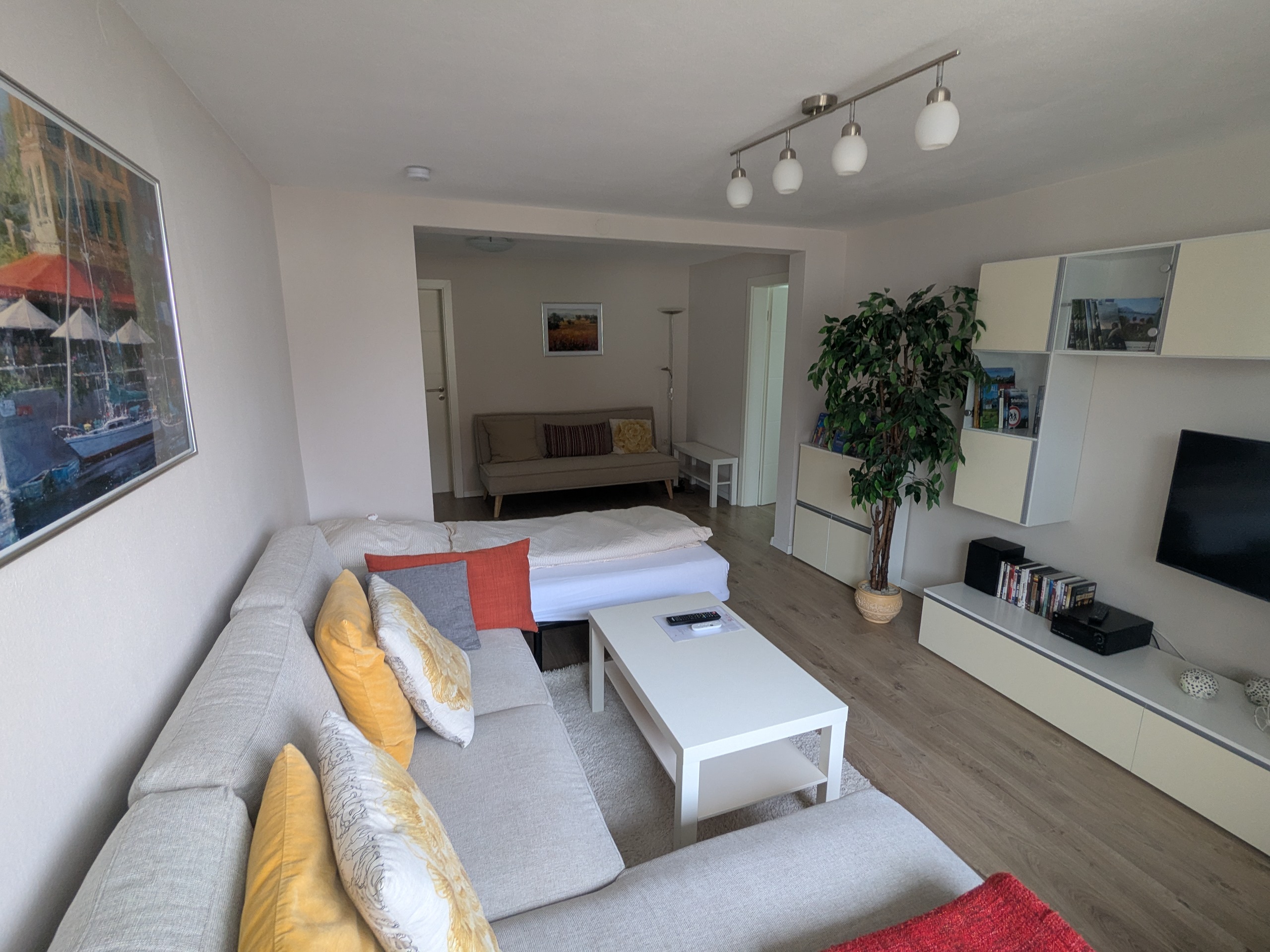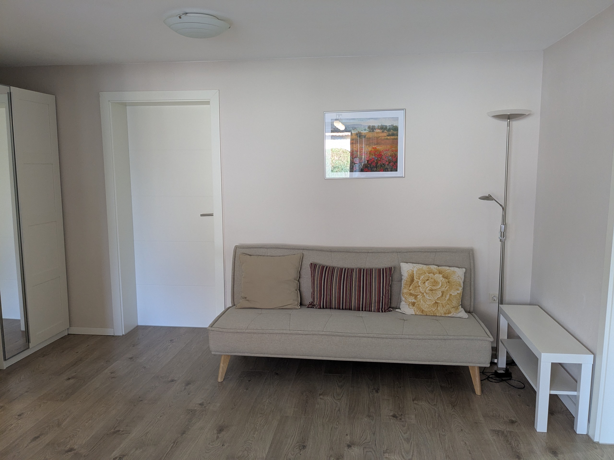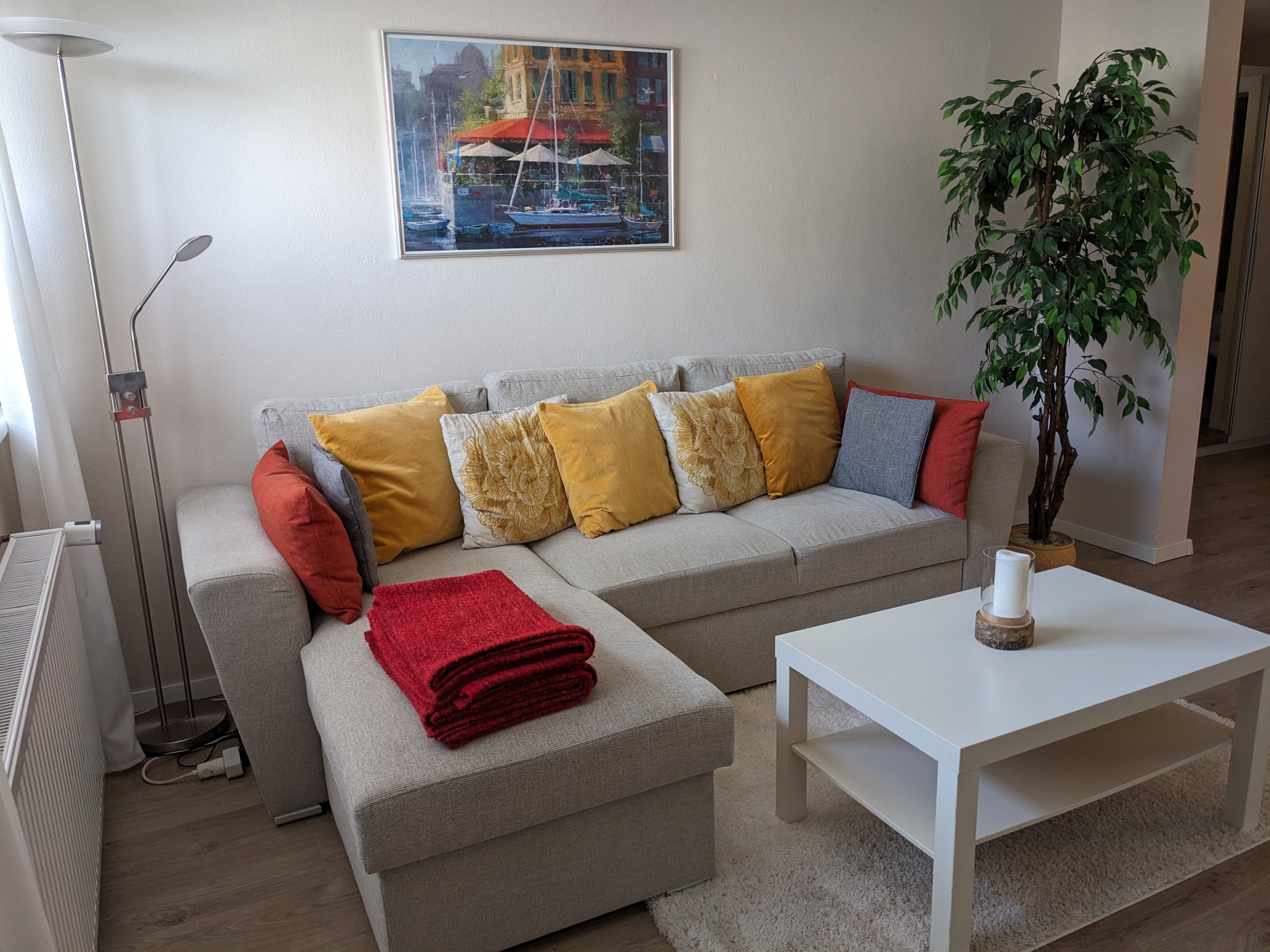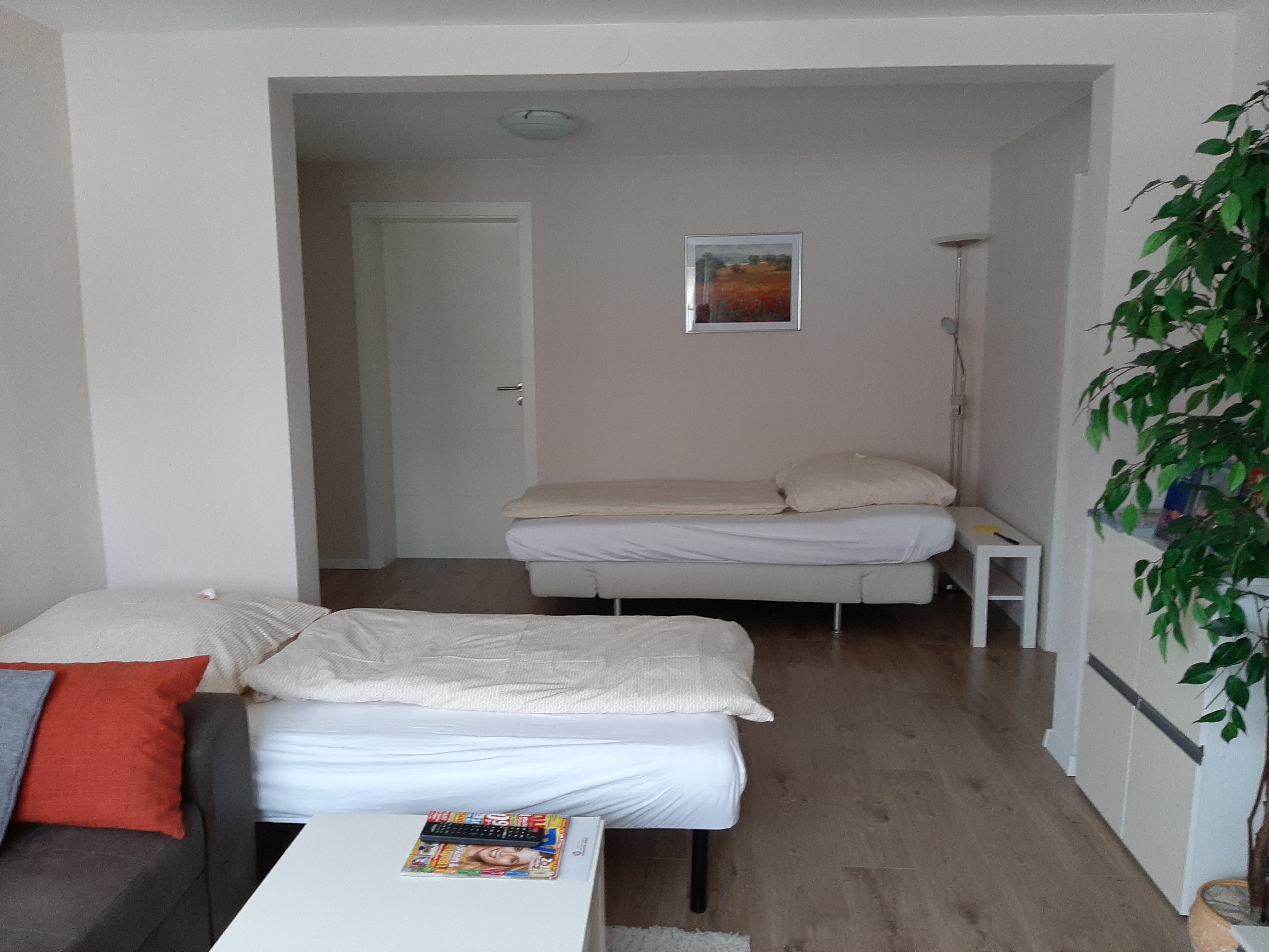Dieses freundliche 60 m² große Apartment in Nord-/Ostlage eignet sich sowohl für eine geschäftlich oder privat reisende Einzelperson als auch für ein Paar. Die Bereitstellung von Zustell- betten bzw. Kinderbett ist möglich. Die Wohnung verfügt über einen separaten Eingang. Ein Autostellplatz ist direkt vor dem Apartment vorhanden. Unser Tipp: Beim Klicken auf die Fotos rechts erscheint jeweils eine Bilderreihe. Durch den Eingangsbereich mit Garderobe gelangen Sie hinein in das Apartment. Gleich zur Linken geht es hinein in das Bad mit Komfortdusche. Handtücher und Föhn sind vorhanden. Nach rechts geht es in die voll ausgestattete Wohnküche, mit Essbereich. Für Unterhaltung sorgt ein Fernseher mit integriertem DVD-Player. Die Küche verfügt über einen Elektroherd mit Ceranfeld, Spülmaschine, Kühlschrank mit Gefrierfach, Mikrowelle, Toaster, Sandwichmaker, Wasserkocher, Eierkocher, Stabmixer, Kaffeevollautomat einschließlich Bohnen, Milchaufschäumer und einen Waschmaschine mit integriertem Trockner. Getränke (Wasser, Softdrinks, Wein und Bier) sind zum Selbstkostenpreis erhältlich. Im Wohnzimmer. erwartet Sie ein gemütliches Ecksofa sowie ein smart-TV mit DVD Player sowie Stereoanlage. DVDs vorhanden. Wir haben umfangsreiches Prospektmaterial über die besten Ausflugsmöglichkeiten in Memmingen und Umgebung für Sie bereitgestellt. Eine Spielesammlung ermöglicht gemütliche Spielabende. Unsere beliebten Allgäu-Krimis mit Kommissar Kluftinger werden bestimmt auch Sie in den Bann ziehen. WLAN vorhanden. Durch das Wohnzimmer hindurch gelangen Sie in das Schlafzimmer, das über Plissee-Rollos verfügt. Es kann auch mit Hilfe von Verdunkelungsrollos komplett verdunkelt werden. Wohnzimmer und Küche sind übrigens auch mit Verdunkelungsrollos ausgestattet. Sollte es Ihnen einmal im Sommer zu heiß werden, stellen wir Ihnen gerne einen Ventilator zur Verfügung. Terrasse Ausstattung Bad: Ausstattung Schlafzimmer: